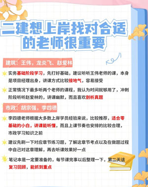 推荐的这些老师都是在互联网上做二级建造师培训优秀的一批老师,他们大多在环球网校、233网校、建工网校(建设工程教育网)、优路教育等机构教学,二级建造师网课机构都有自己独特的课程体系,网课价格也比较低。
